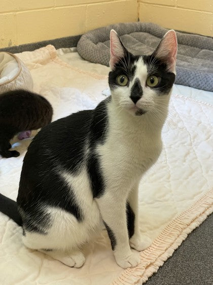 Halle is a stunning black-and-white sweetheart with a gentle, loving nature and a heart full of affection. After lovingly raising her kittens (who’ve all found homes!), it’s finally Halle’s turn to be spoiled. She’s calm, cuddly, and adores one-on-one attention, making her the perfect companion for a cozy, peaceful home.